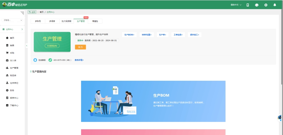 百卓輕云ERP的委外加工為生產(chǎn)管理模塊之一,咨詢專線:18402578025 或 400-6979-890(轉(zhuǎn)1)。提供增值稅普通發(fā)票,稅點(diǎn)6%。